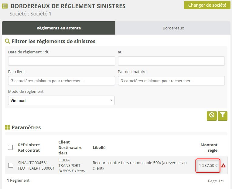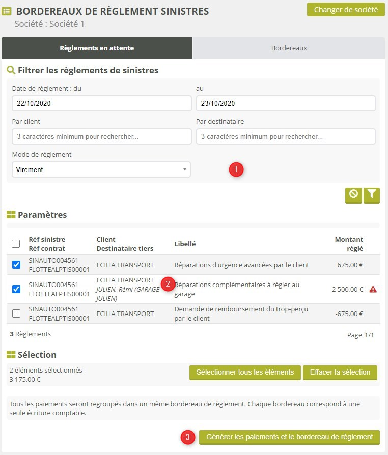 Les règlements créés sur des sinistres ne sont pas encore émis, au moment de leur création. Ils sont dans un état transitoire. Pour les rendre effectifs, et les décaisser en comptabilité, ils doivent être placés dans un bordereau de règlement de sinistres.