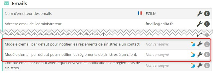 Modulr génère un email pour chaque destinataire, à partir du modèle d’email défini en configuration globale ; il est possible de définir 1 modèle pour les clients et 1 autre pour les tiers (contacts). Dans vos modèles vous pouvez utiliser l'étiquette suivante : {{claim_payment_email_submit}} qui permet de récupérer dans l'email les règlements de sinistre qui doivent être notifiés.