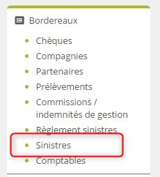 Vous accédez à la gestion des bordereaux de sinistres compagnie depuis le menu de gauche :