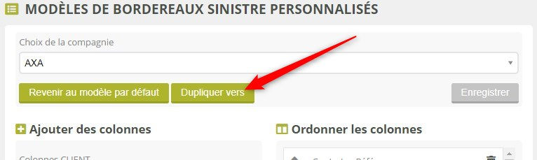 Une fois que vous avez défini un modèle personnalisé pour une compagnie, si vous chargez ce modèle, un bouton « Dupliquer vers » apparaît.