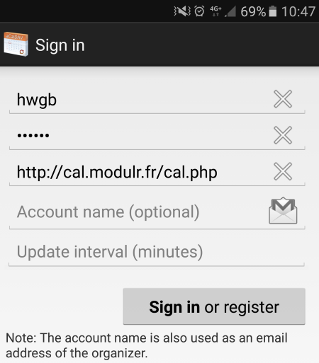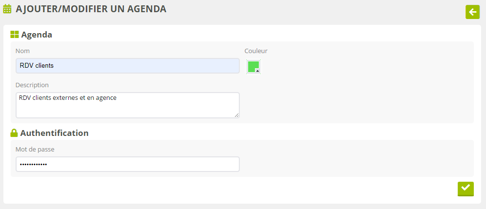 Un mot de passe qui sera utilisé pour synchroniser votre agenda avec votre smartphone.