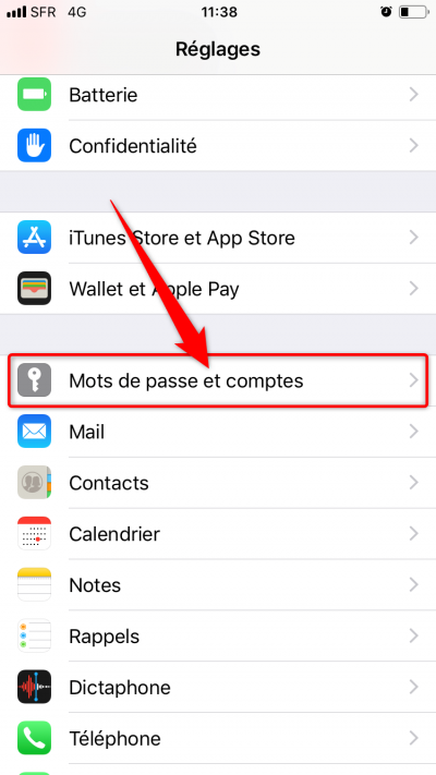 Commencez par accéder au menu “Réglages” de votre iPhone, puis “Mots de passe et comptes” et enfin, “Ajouter un compte”.