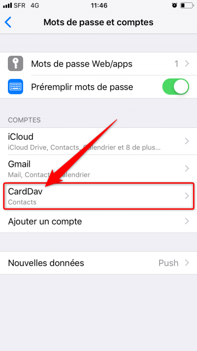 Le protocole CardDAV est géré nativement sur iPhone. Il n'est pas nécessaire d'utiliser une application tierce pour pouvoir effectuer la synchronisation.