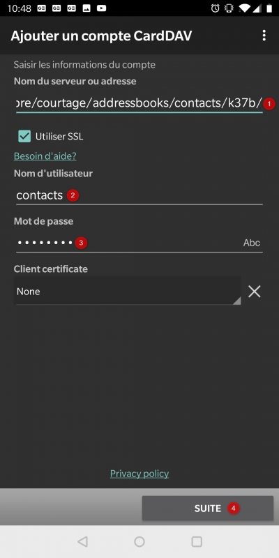 Le protocole CardDAV n'est pas géré nativement sous Android. Il est nécessaire de passer par une application tierce pour pouvoir effectuer la synchronisation.