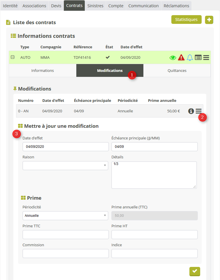 Modifications.Modifier l'avenant.