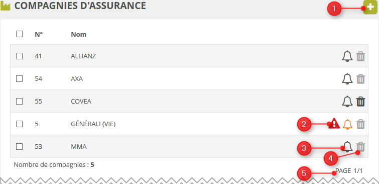 La liste des compagnies vous permet de visualiser l'ensemble des compagnies enregistrées dans la plateforme. Chaque ligne vous permet d'identifier la compagnie à partir du :