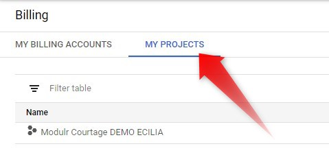 Vous devez maintenant raccorder votre projet et votre compte de facturation. Dans l'écran de gestion de modes de paiement, cliquez sur l'onglet “My projects” :