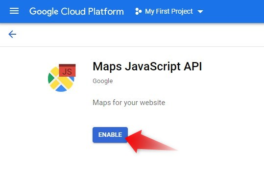 Cherchez dans la liste des services « Maps JavaScript API » et cliquez dessus.