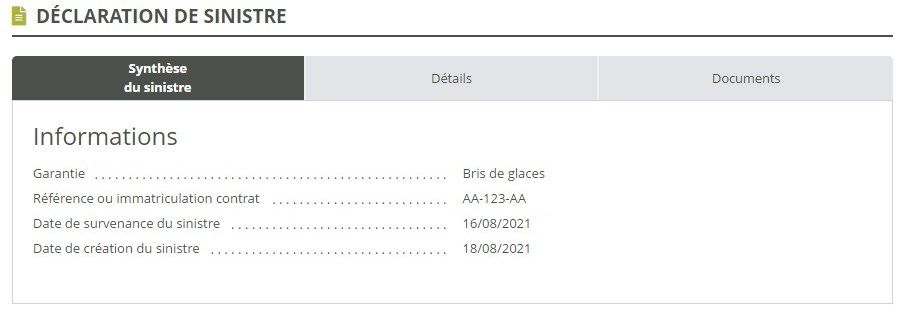 Il peut seulement consulter les informations saisies (onglets « Synthèse du sinistre » et « Détails »)