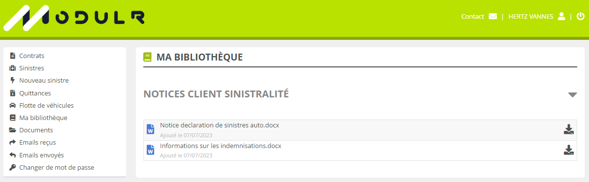 Ma bibliothèque.Documents accessibles sur l'extranet client : permet de rendre les documents accessibles sur l’extranet client dans une section