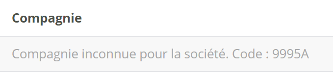 Si un code compagnie ne correspond pas à une fiche compagnie Modulr, la ligne du fichier vous en avertira en précisant le code compagnie présent dans le fichier :