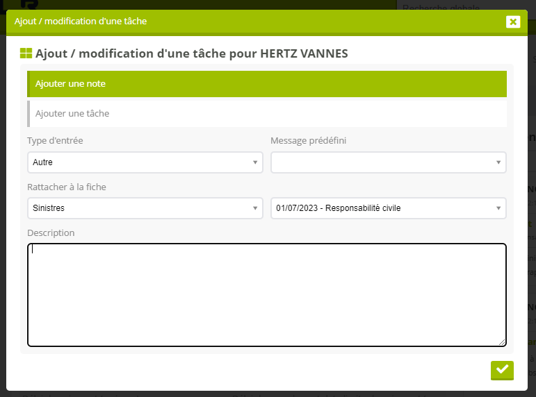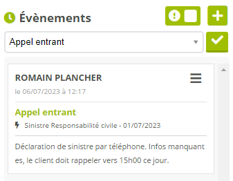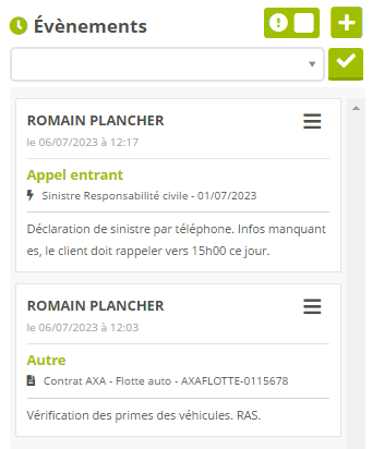 Le devis, contrat, ou sinistre éventuellement concerné (disponible sur les fiches de clients uniquement).