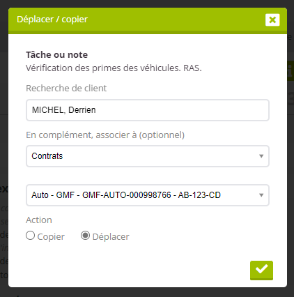 Déplacer / copier l'événement sur une autre fiche client.