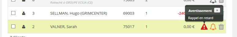 Le nombre de rappels à traiter vous concernant.