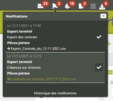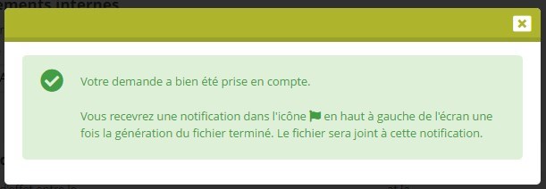 Vous retrouverez ensuite le document généré dans une notification système, accessible dans le coin supérieur gauche de votre écran (icône “drapeau”) :