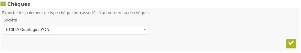 L'export des chèques vous permet de produire un tableau de l'ensemble des chèques qui n'ont pas encore été associés à un bordereau de remise de chèque (voir l'article « Bordereaux de chèques »). Dans le cas d'une utilisation multi-devises de la plateforme, la devise des chèques est à préciser.