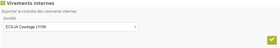 L'export des virements internes vous permet de produire un tableau de l'ensemble des virements internes enregistrés dans la plateforme. Dans le cas d'une utilisation multidevises de la plateforme, la devise des virements internes est à préciser.