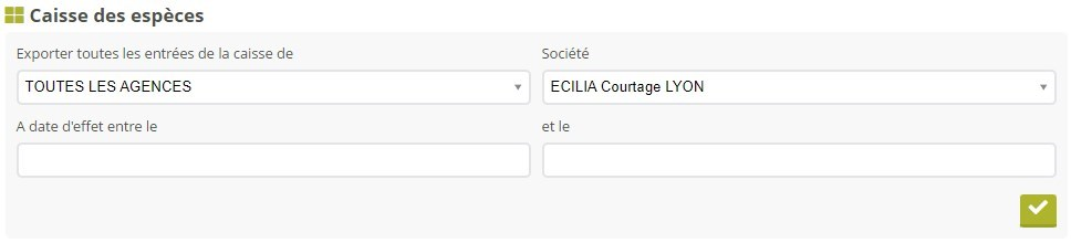 L’export de la caisse des agences vous permet de produire un tableau de l’ensemble des opérations de débits et crédits d’une agence (ou de toutes les agences) entre deux dates.