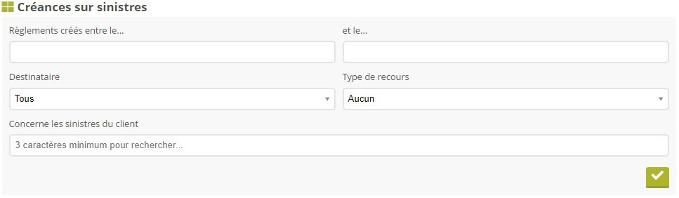 L’export des créances sur sinistres vous permet de produire la liste des règlements de sinistres négatifs, c’est-à-dire l’ensemble des demandes de remboursements et des recours contre tiers (qu’ils soient à reverser aux compagnie ou aux clients).