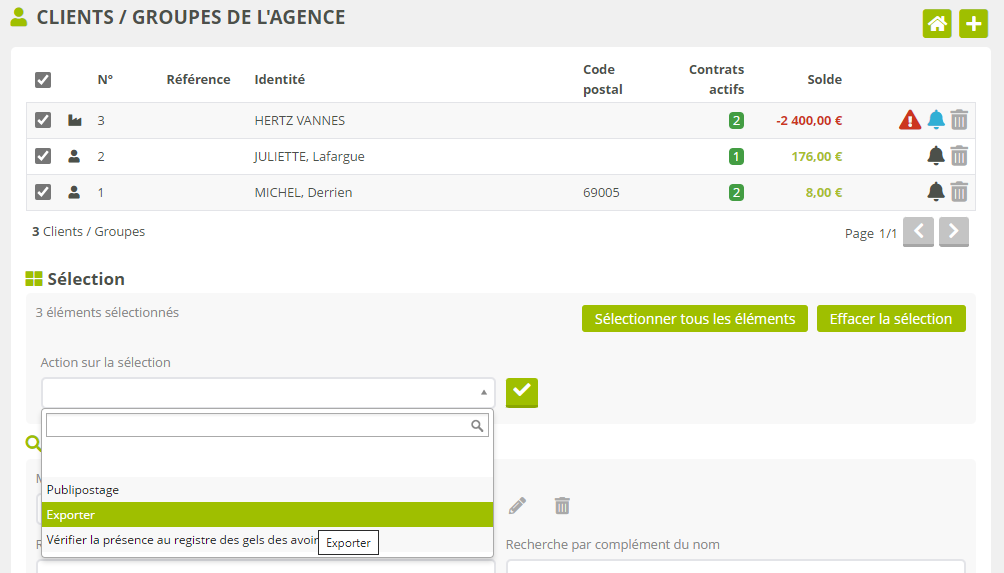 Export d’une sélection de Clients