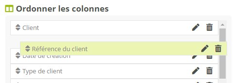Ordre des colonnes : vous pouvez ici effectuer 3 actions :