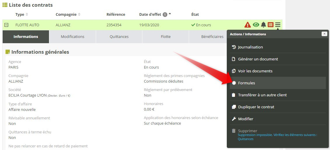 Ajouter, modifier ou supprimer une formule la rend immédiatement disponible pour tous les contrats associés.