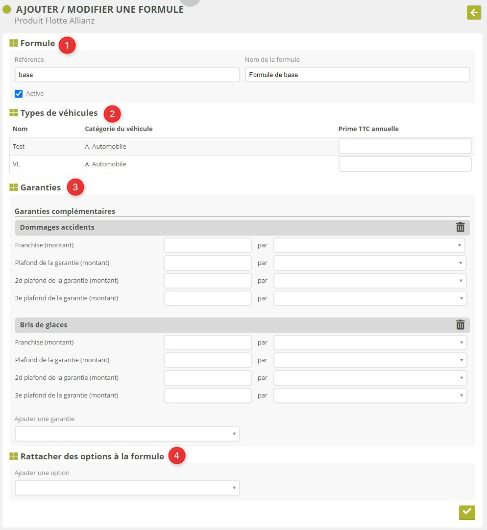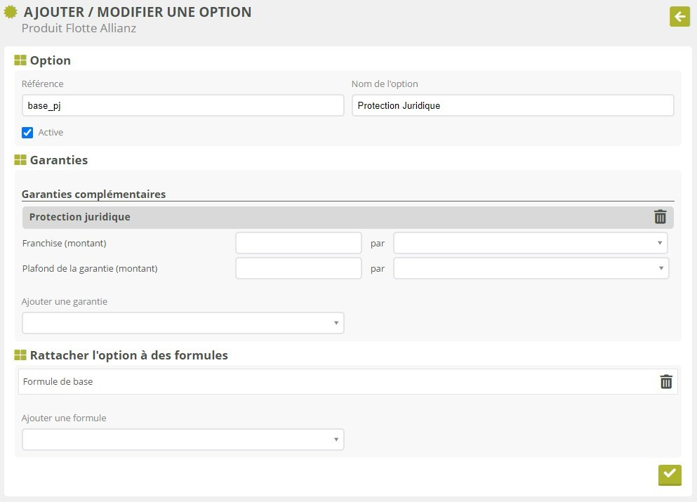Une option est un pack de garanties, au même titre qu’une formule. La création d’une option est donc très similaire à celle d’une formule de base :