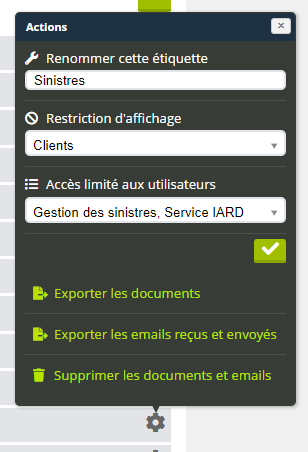 Faire apparaître un menu d'actions supplémentaires pour modifier les étiquettes et leur ajouter des règles de gestion.