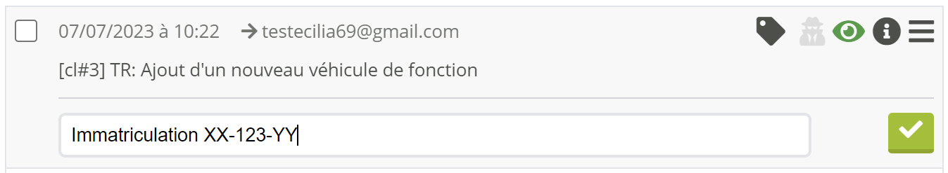 cloche : indique la présence d’une tâche de rappel concernant cet email. Au survol, une infobulle affiche un aperçu de la tâche et permet d’accéder au détail à la prise en charge de la tâche.