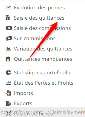 Le menu Bordereau de commissions permet ensuite de pointer les commissions réceptionnées de la part de la compagnie (voir les articles Gestion des commissions et Bordereaux de commissions et d'indemnités de gestion).