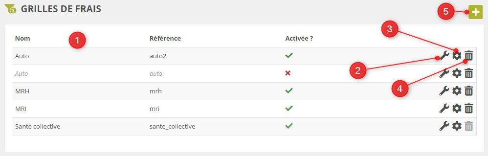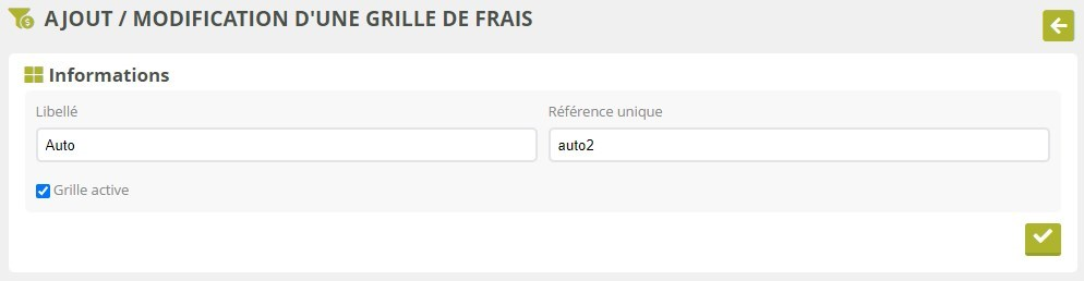 Vous accédez à cette interface depuis la page d’administration, en cliquant sur « Grilles de frais ».