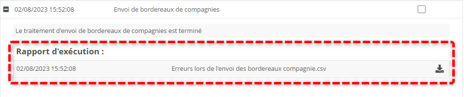 début de la tâche différée : si vous cherchez à retrouver le rapport d’un traitement spécifique dont vous connaissez la date de début. Exemple : une facturation Chorus du 24 janvier à 23h00 qui aurait pu poser problème.