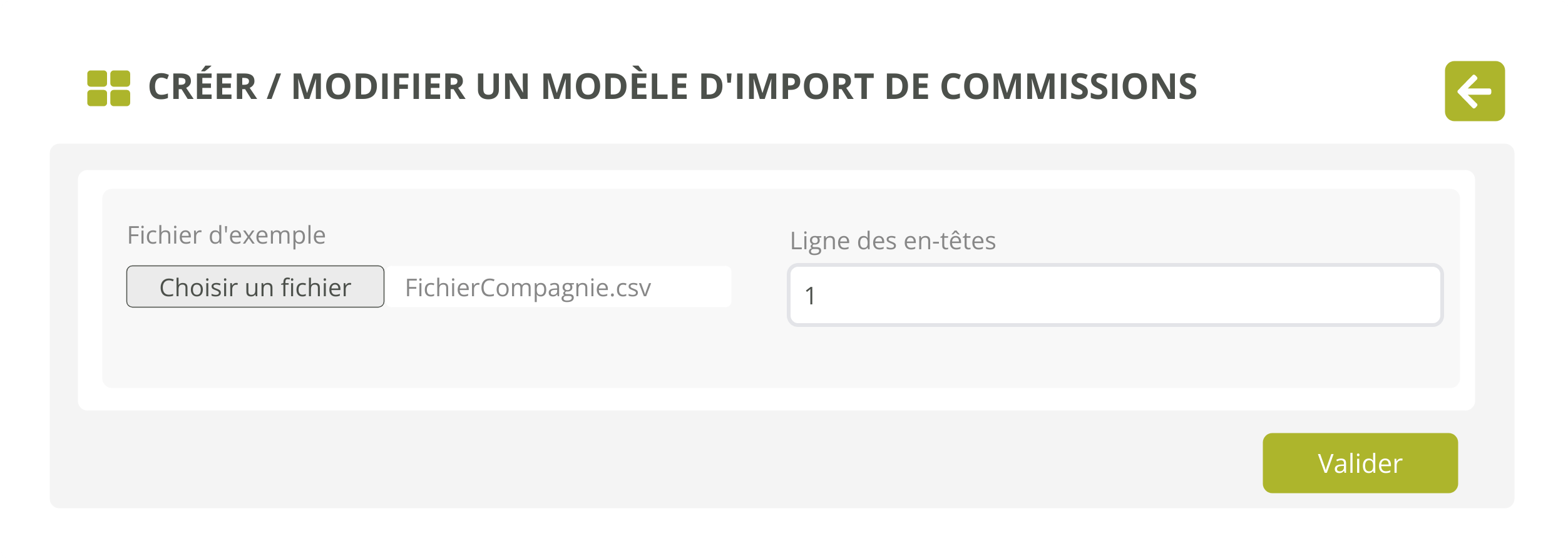 Indiquez le numéro de la ligne qui contient les en-têtes. Bien souvent vous recevez un fichier Excel dont le tableau de données utiles est assorti d’un bloc de paratexte (date, total des primes, coordonnées…) qui décale le tableau et sa ligne d'en-tête. Celle-ci peut alors se trouver plus bas dans le fichier.
