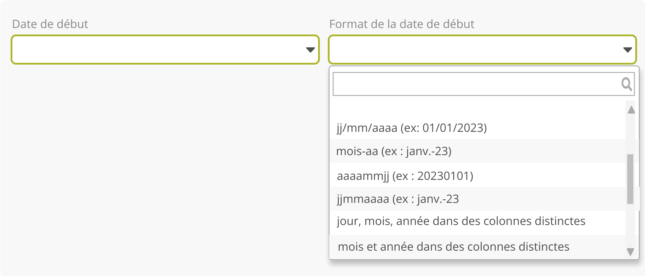 Selon le cas de figure, vous aurez à préciser le format de la date parmi une liste de cas courants et, le cas échéant, devrez préciser à quels en-têtes correspondent les données.