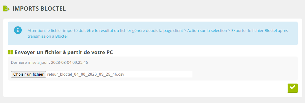 Importer le fichier retour de Bloctel