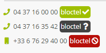 Dès lors que vous avez activé Bloctel sur Modulr, tous les numéros de téléphone porteront une mention indiquant leur position quant au démarchage :