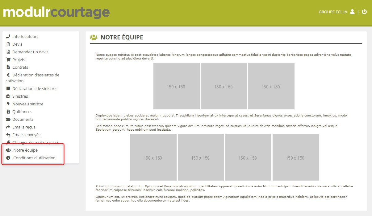 Il vous est possible de personnaliser les extranets Modulr clients et partenaires, en rajoutant des pages de contenus éditoriaux.