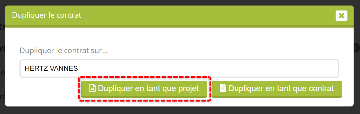 Dupliquer un contrat en tant que projet