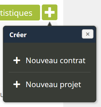 Le bouton d’ajout + permet désormais de choisir au survol si l'on veut créer un contrat ou un projet.