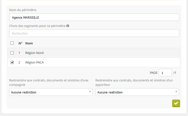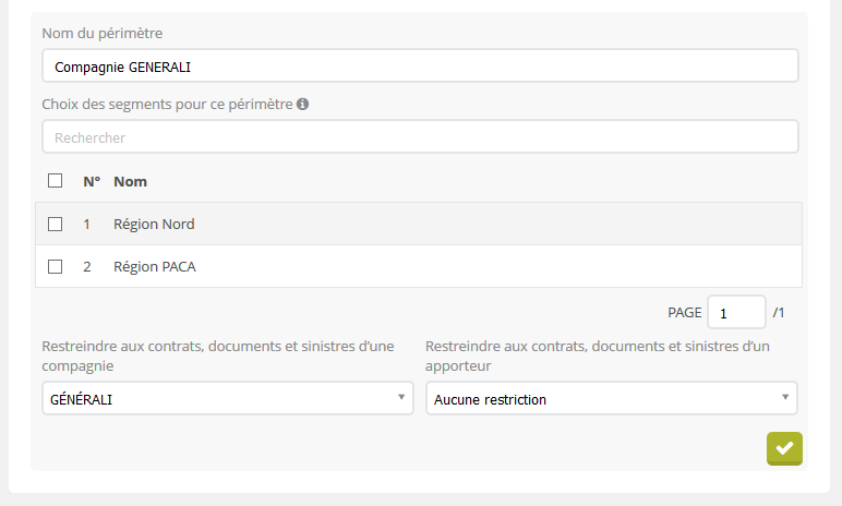 Les périmètres utilisateurs sont au centre de la segmentation du portefeuille. C'est par le biais de ce module que vous allez pouvoir associer un ou plusieurs segments de clients à un périmètre, et/ou restreindre celui-ci à une compagnie et/ou un apporteur d'affaires. Une fois vos périmètres configurés, il ne vous reste plus qu'à les appliquer aux utilisateurs concernés afin que la segmentation soit effective.