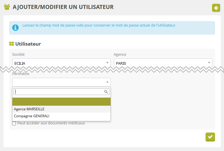 Les utilisateurs n'ayant aucun périmètre auront par défaut accès à l'ensemble du portefeuille.