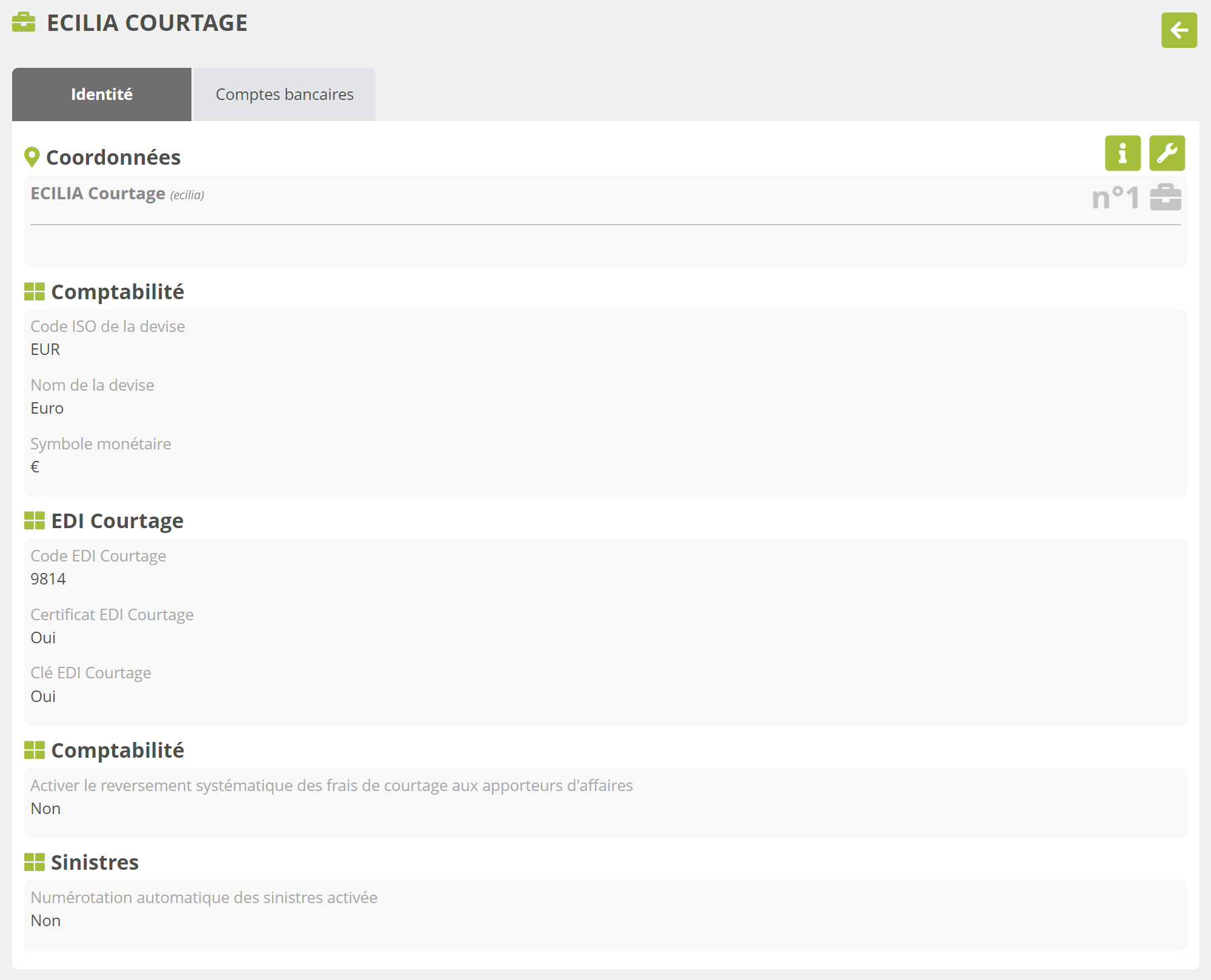 Enfin, la référence vous permet de renseigner le compte bancaire dans certains imports (contrats, paiements clients, règlements de sinistres...).