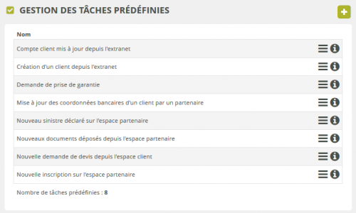 Les tâches prédéfinies sont des « modèles de taches » qui vont vous permettre de créer des tâches plus rapidement en pré-renseignant leurs informations, et même en automatisant leur création selon certains critères.