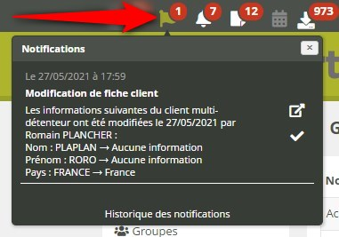 Attente : dans les tâches de l’utilisateur (icône cloche en haut de page dans la barre des notifications), la tâche ne sera affichée qu’une fois l'échéance atteinte, pour être traitée ce jour-là, afin de ne pas noyer l’utilisateur avec des tâches pas encore réalisables. La tâche sera toutefois visible dès sa création lorsqu’on accède à la fiche du client concernée, et pourra y être manipuler comme une tâche classique (réaffecter, repousser, annuler etc.).