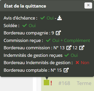 Nous avons amélioré le visuel du détail d’une quittance, pour indiquer lorsque les commissions (ou indemnités de gestion) sont reçues dans quel(s) bordereau(x) sont présentes ces commissions, avec un lien vers le bordereau en question.